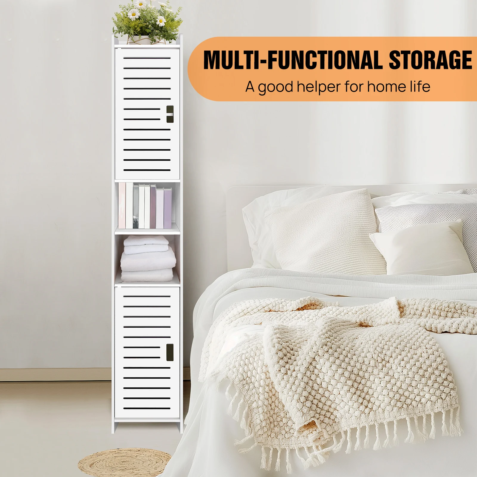 Bathroom Storage Cabinet, White PVC Bathroom Storage Unit Bathroom Cabinets Free Standing Slim, 116*20*20cm