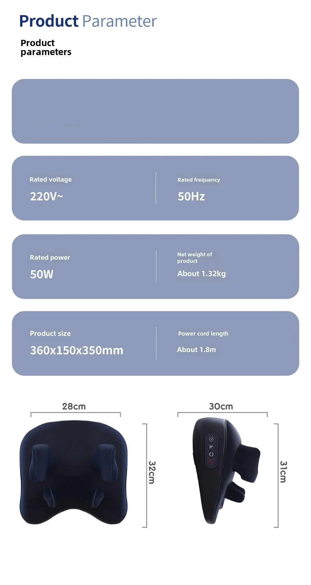 Trapezius Massage Pillow Wireless Electric Car Home Massager Heating Waist Neck Leg Cervical Shiatsu Kneading Rechargeable